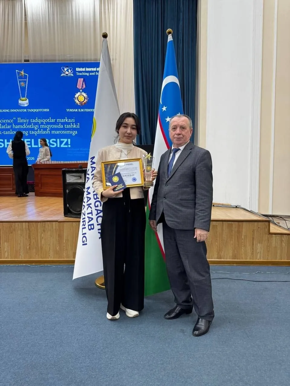 Yosh tadqiqotchilar safida bu iqtidorli talaba-qizlarimiz ham Diplom, maxsus statuetka, Sertifikat hamda qimmatbaho sovg‘alar bilan taqdirlandilar.