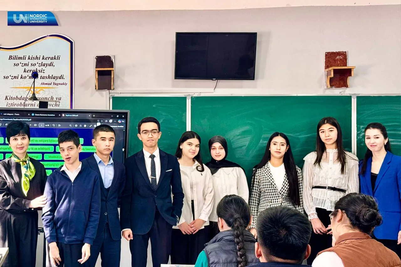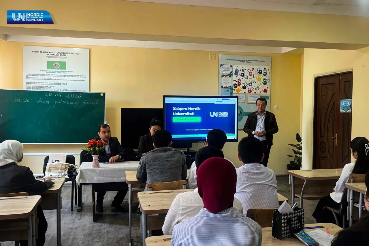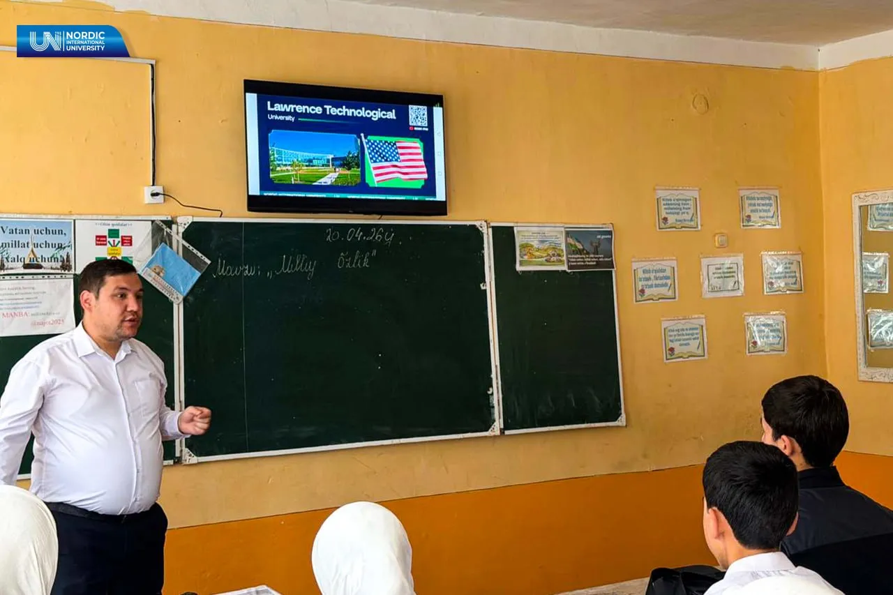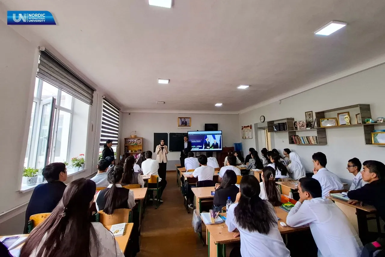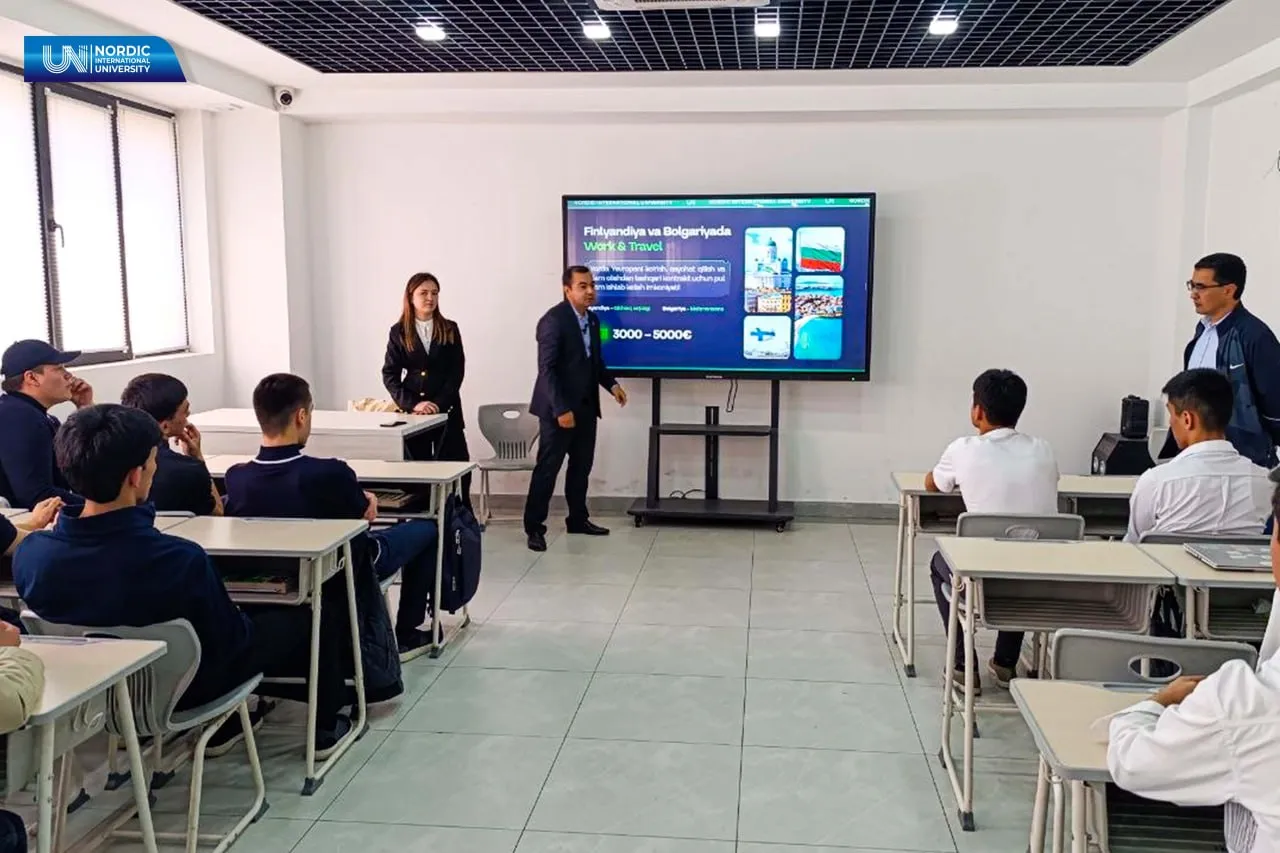 O‘quvchilar Xalqaro Nordik universiteti misolida mavjud istiqbolli taʼlim yo‘nalishlari, xalqaro hamkorlik dasturlari va akademik muhitga oid batafsil ma’lumotlarga ega bo‘lishmoqda.